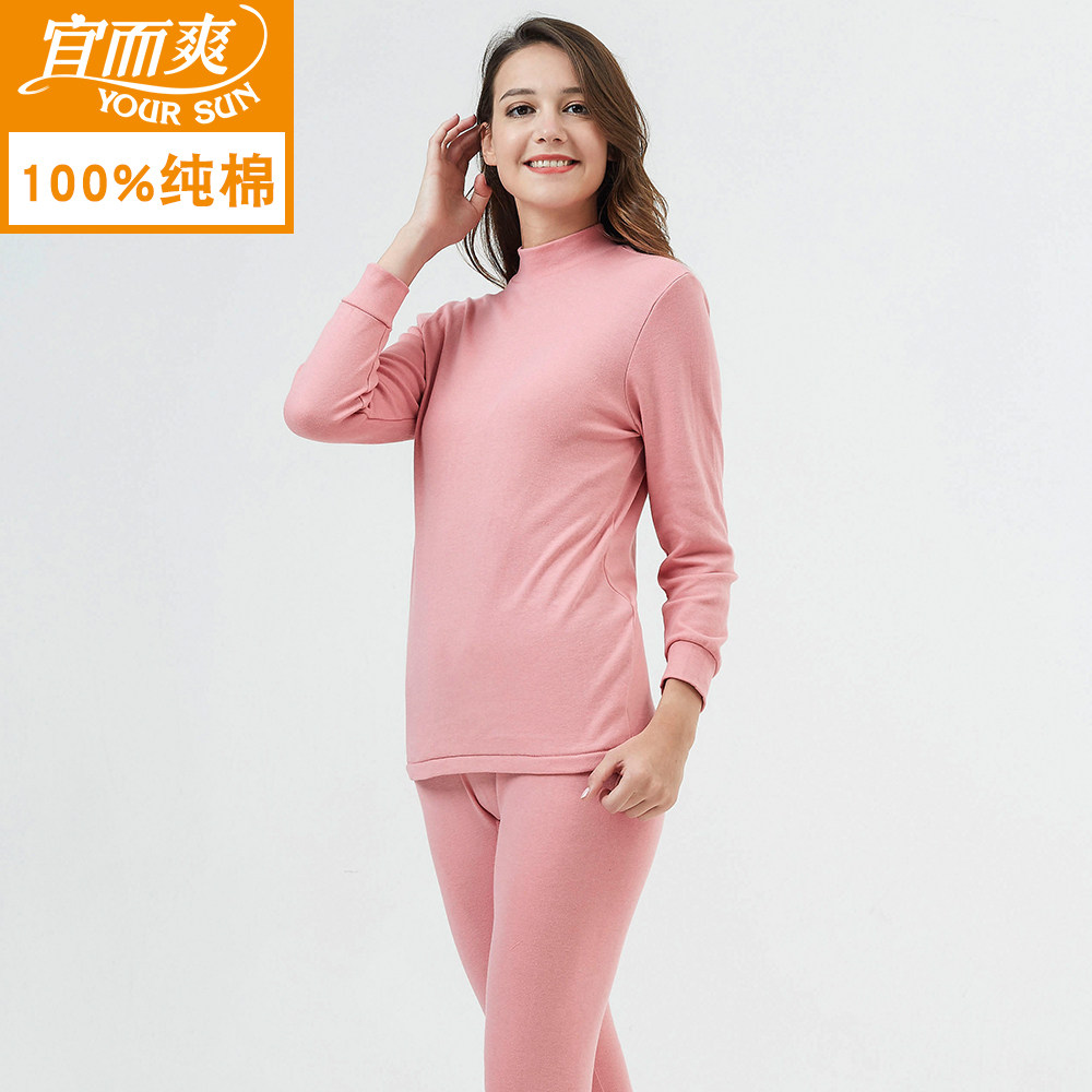 Nice and refreshing ladies pure cotton thin autumn clothes sanitary pants suit for older moms loose large size circle collar semi-high-collar underwear