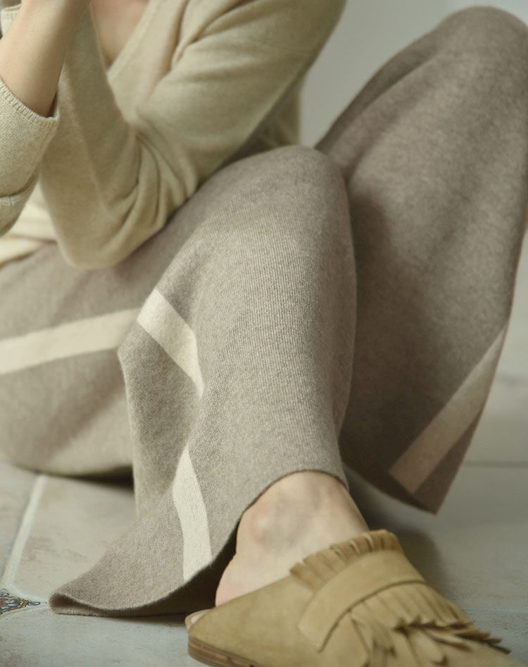 APC Lean customised Kaisemi Experience Fancy Luxury LADY KNIT DOUBLE LAYER CASHMERE WIDE LEG PANTS