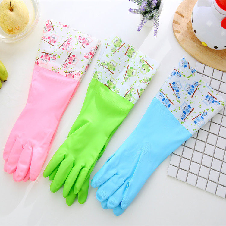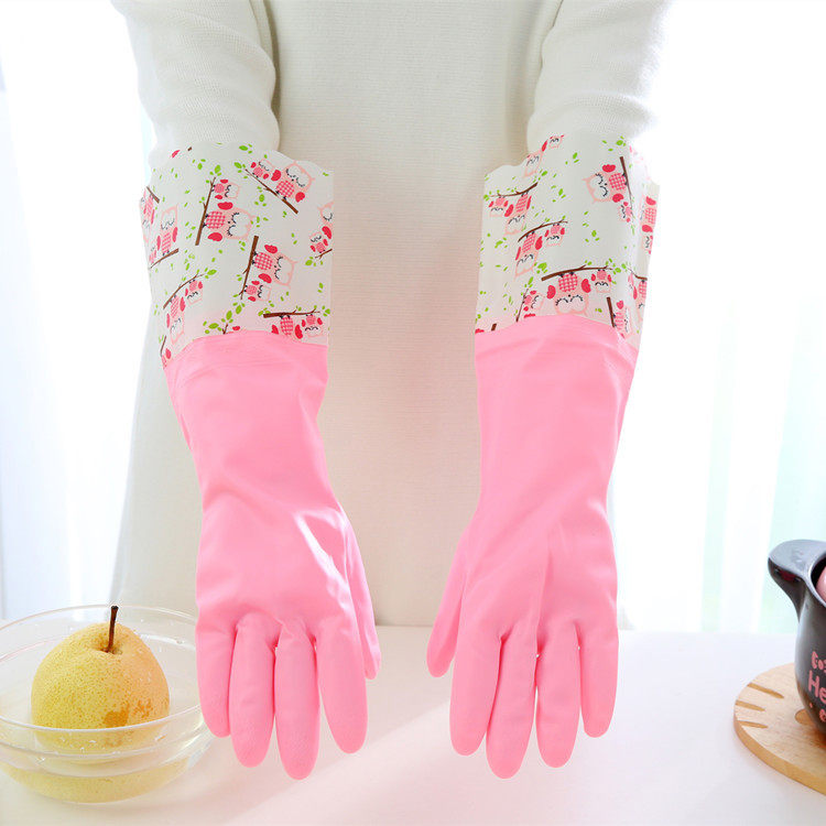 Dishwashing Gloves Durable Kitchen Waterproof Plus Suede Thickened Warm Wash Clothes Rubber Latex Rubber Sheet Domestic Gloves
