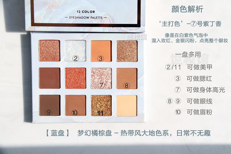 Second generation marble eye shadow plate VENUSMARBLE powder plate Blue plate Earth orange brown nude pink novice 12 colors