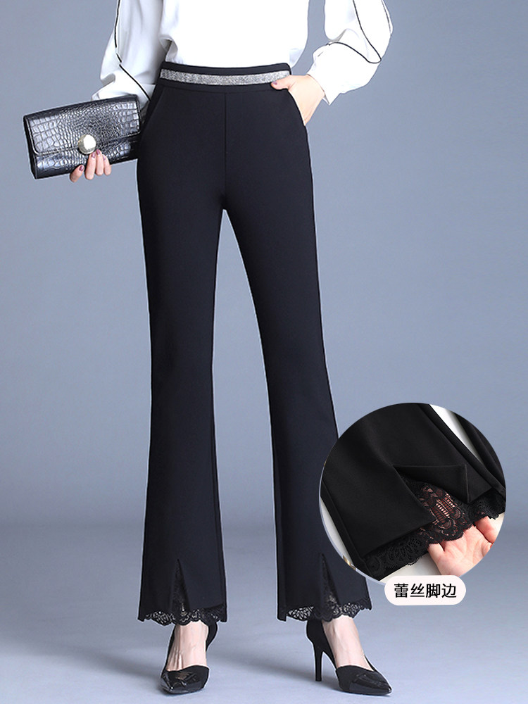 Flared pants women's high waist slim fishtail pants large size drape stretch black lace micro flared pants women's autumn