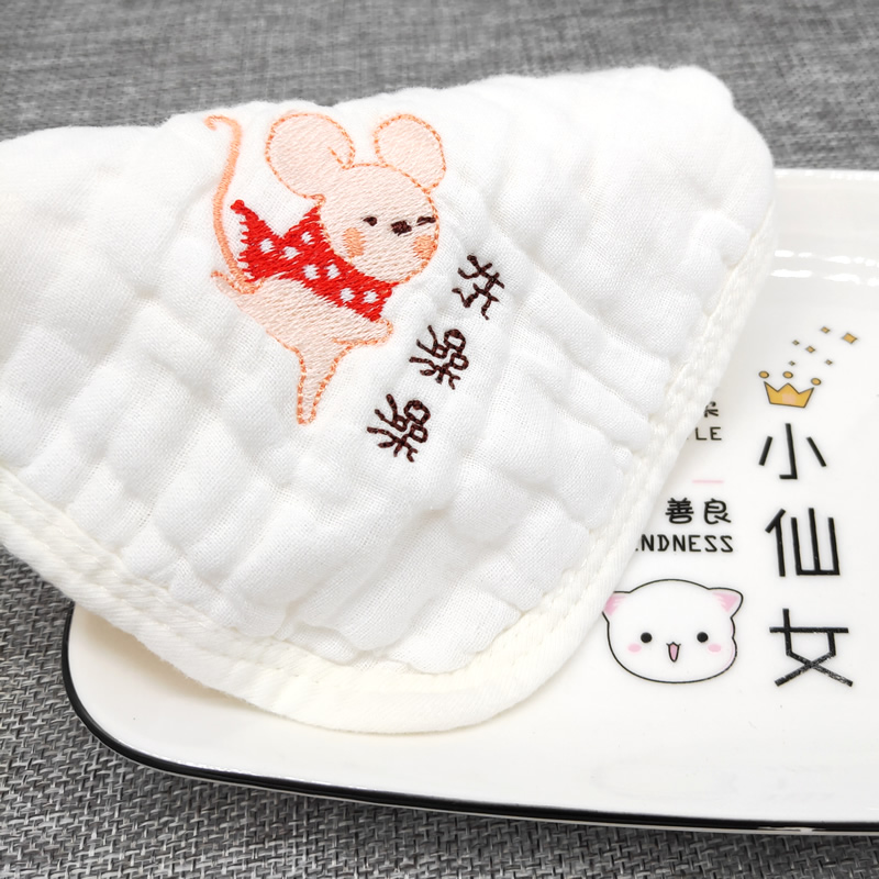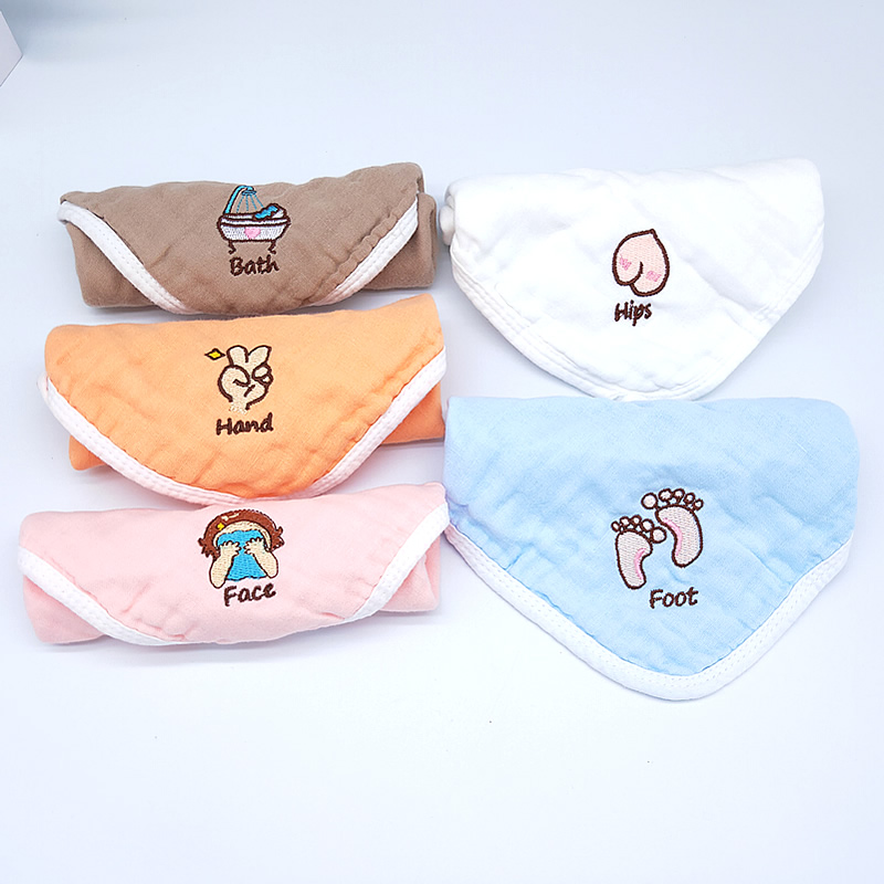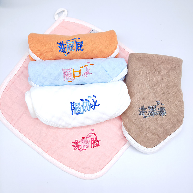 Baby embroidered word saliva towel Baby gauze towel Pure cotton bath towel Small square towel Newborn children's products face towel