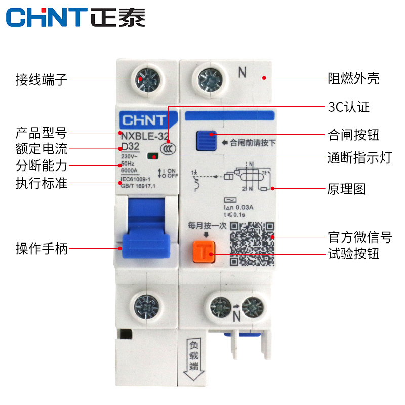 Positive Tai leakage circuit breaker Home air switch with earth leakage protection empty open 2P leakage and overload NXBLE D type