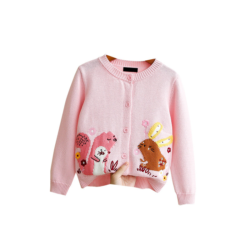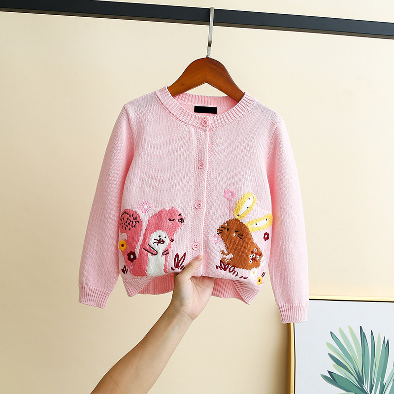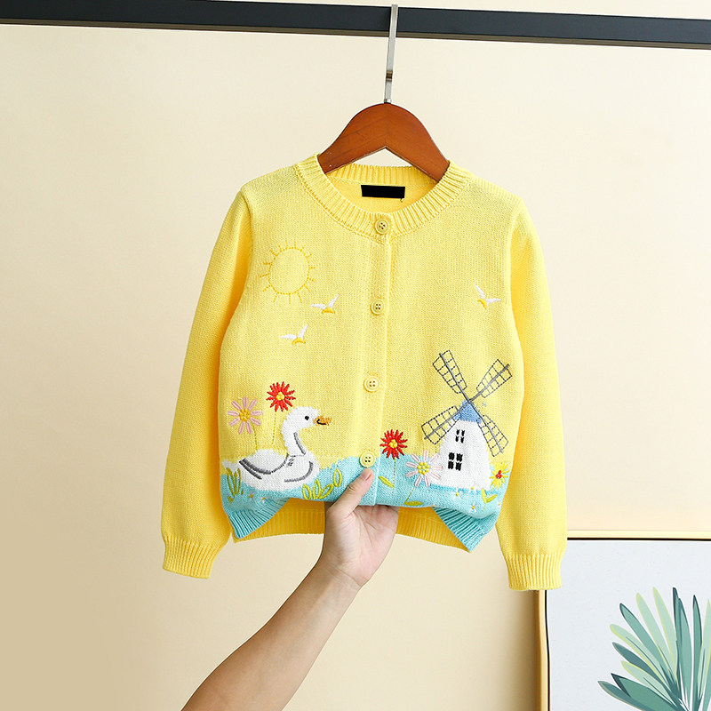 Han Edition Children's Clothing Spring Autumn Girl Pure Cotton Handmade Embroidered Cardiovert Sweater Children Polo Sweaters Baby Woolen Sweater Jacket