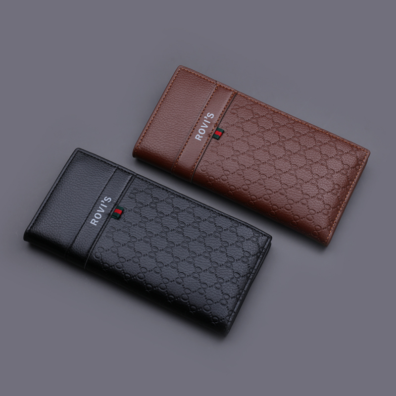 Men's wallet long version for men's leather wallet retro leather money clip men's multiple screens ultra-thin and free driving license thin