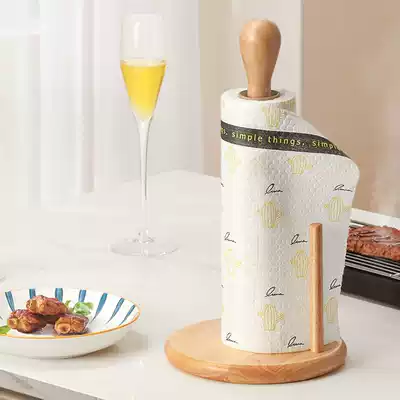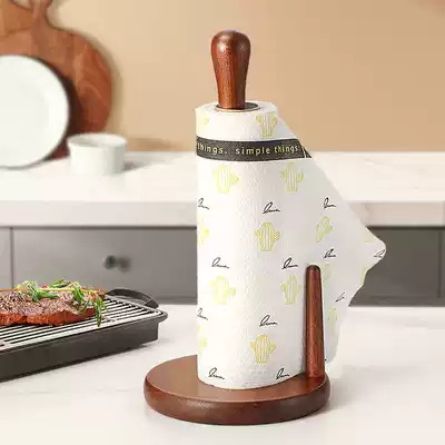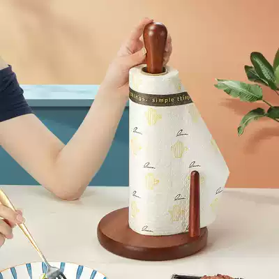 Creative solid wood paper towel rack Kitchen punch-free plus super absorbent paper oil-absorbing roll toilet paper storage shelf Vertical cling film rack