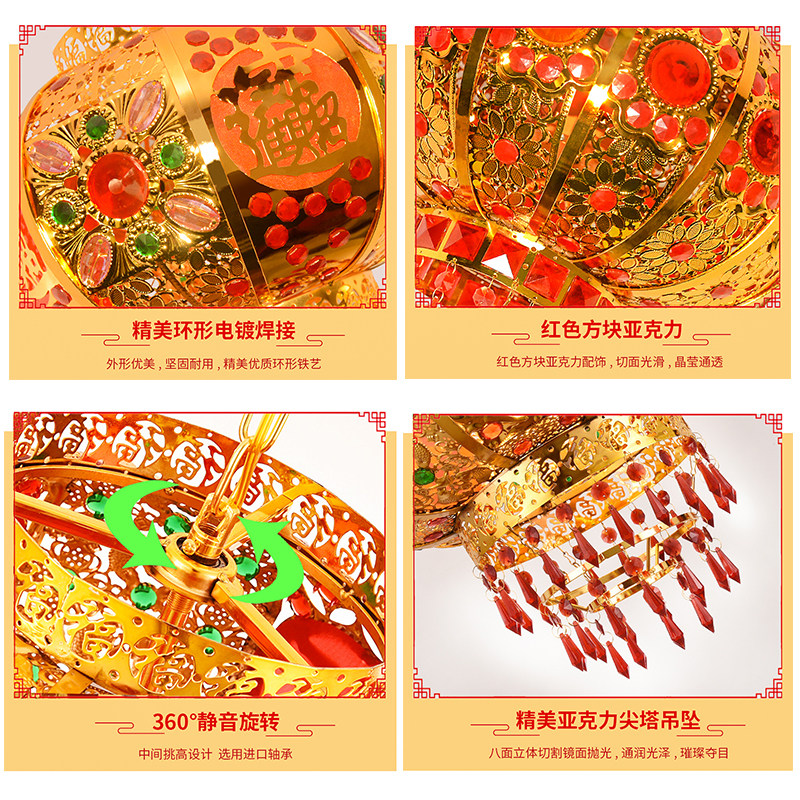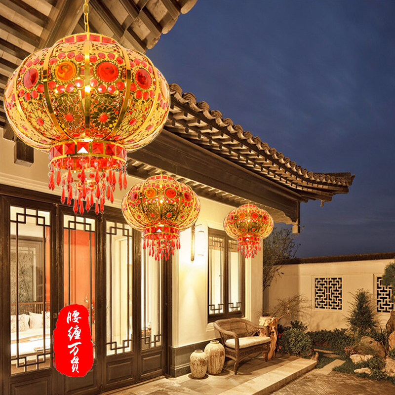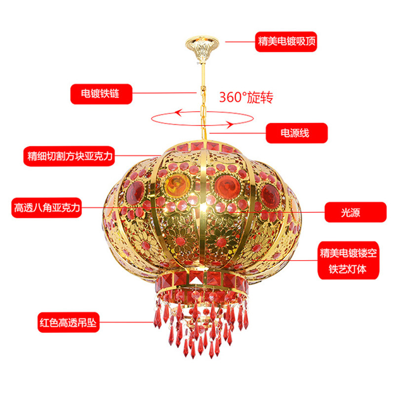 New Year's big red balcony gate lantern pair of chandelier decoration outdoor housewarming wedding revolving crystal walk kerosene lamp