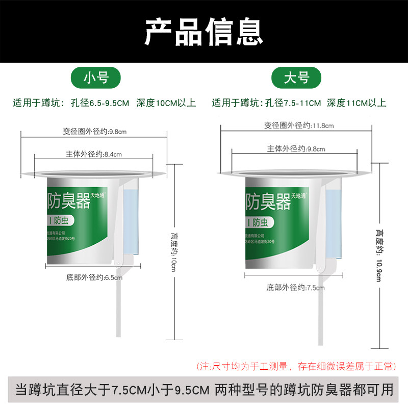 Small odor damper (basic model) Large odor damper (basic model) Small odor suppressor (reinforced model) Large odor damper (reinforced model) Small deodorizer (reinforced model) 2 large odor damper (reinforced model) 2 installed small (reinforced) + large (reinforced)