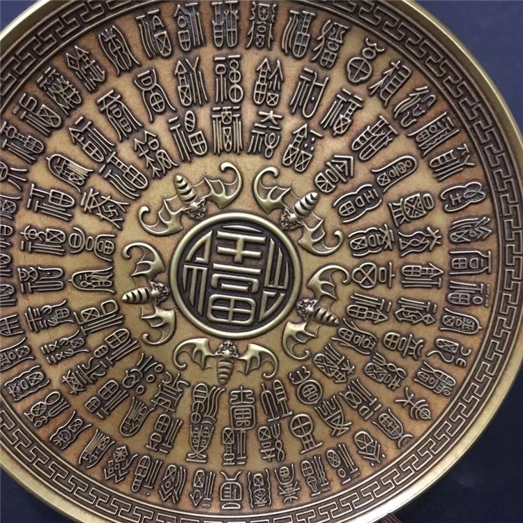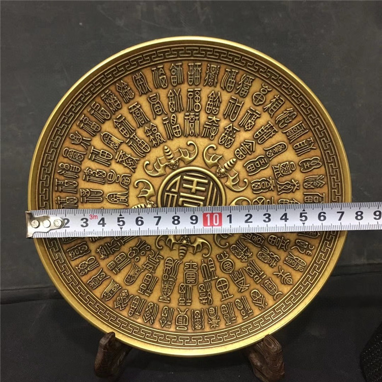 Antique bronze ware Momofuku diagram copper disc plate collection ornament high float engraving Momofuku Spring figure pure copper decorative placement