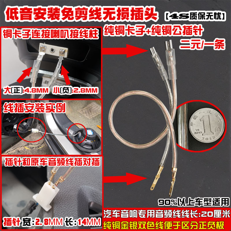 Universal bass inserts 2 8MM One treble small black clip model universal one Suzuki macro light Baojun No distortion line plug a Changan bass special no distortion line plugging a Great Wall bass special without loss