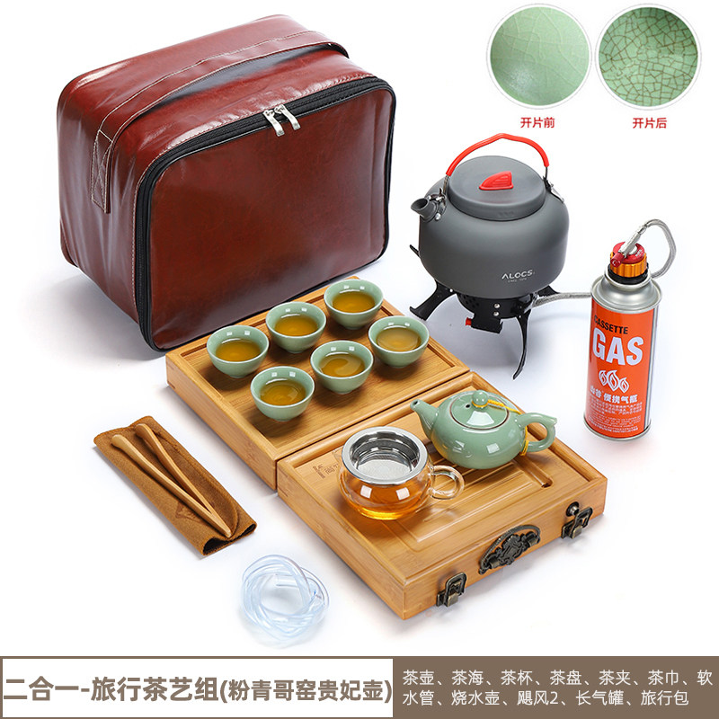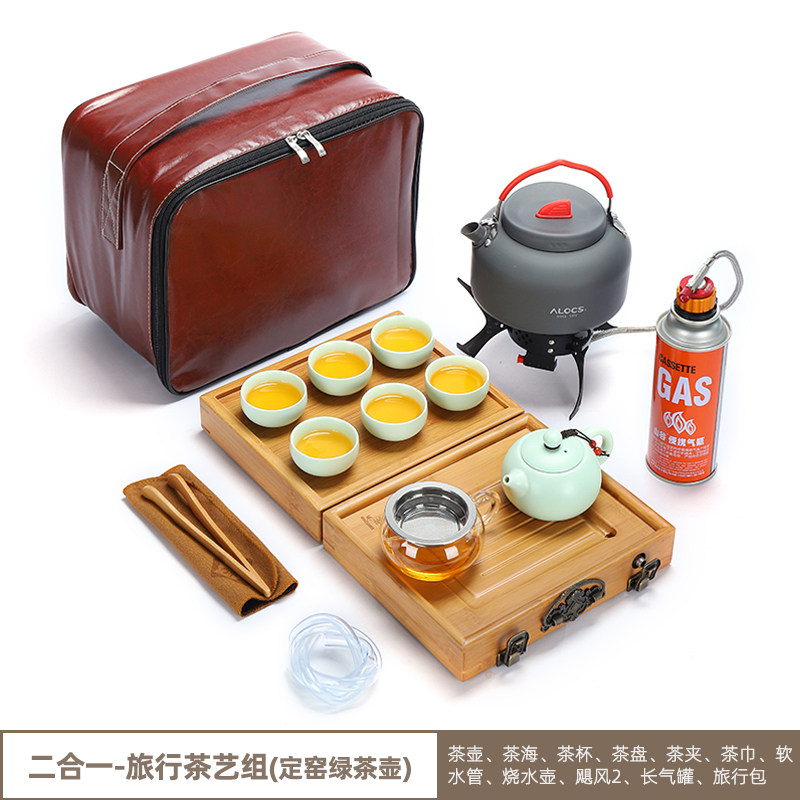 Outdoor tea set with kettle tea stove camping portable bag car travel kung fu tea tray windproof stove