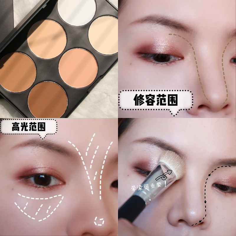High-light side shadow six-color pallet dual-use disk shadow shadow blush three-in-one matte brightens pink pink