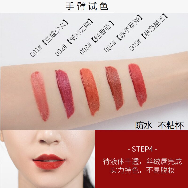Fini small crowdsourced lip glazed with tomato red tea colour not falling out of color and white and affordable matt.
