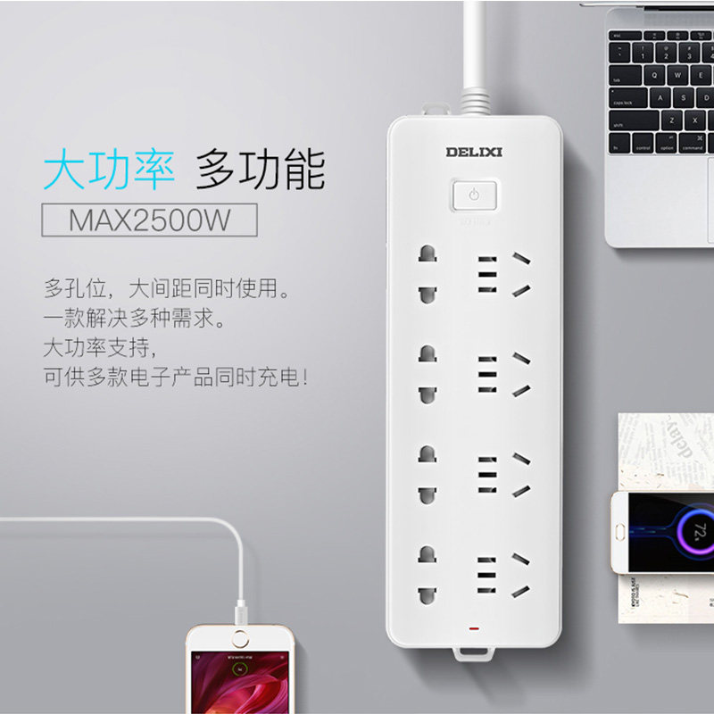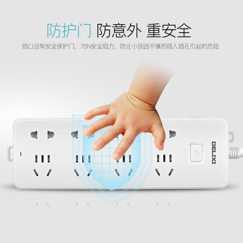 Delixi socket panel porous household wiring tow line plug-in multi-purpose power supply long strip line plug-in board