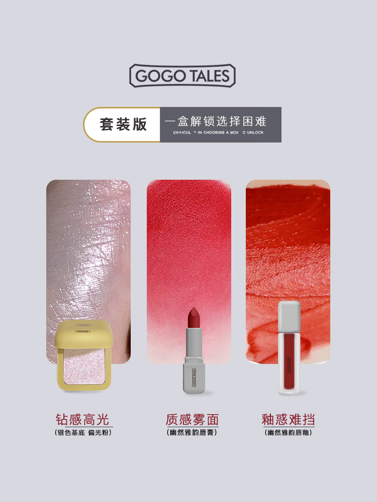 National Cargo Light Gogo Dance Elegant Rhyme Three Sets Of Lipstick Red Lip Glazed Milk Diamonds High Light Suit Parity