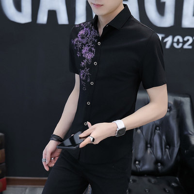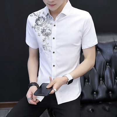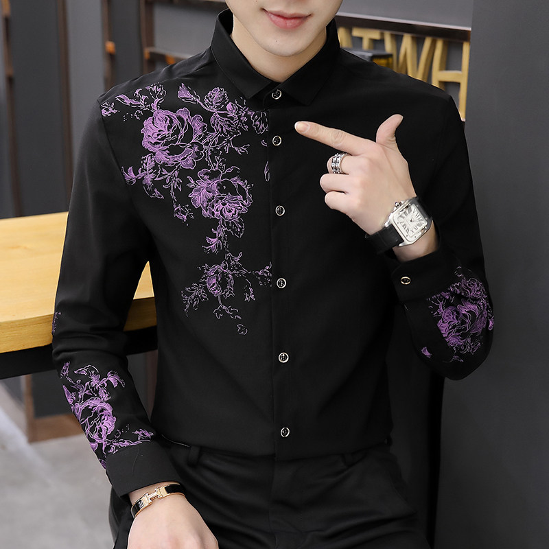 Spring and autumn 2021 new men's long-sleeved shirt trend white shirt slim high-end sense free ironing high-end printing inch shirt