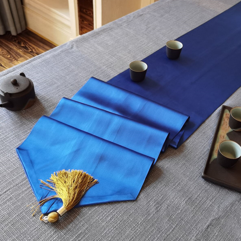 New Chinese blue table flag silk texture light and luxurious vintage minimalist tea mat table cloth art tea table strip decorations