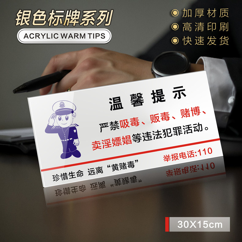Acrylic strictly prohibits yellow gambling and drug warning stickers signs prohibiting drug trafficking, drug trafficking, gambling, prostitution and whoring and other illegal and criminal activities, warm reminder cards, cherish life, stay away from pornographic, gambling and drug sign stickers