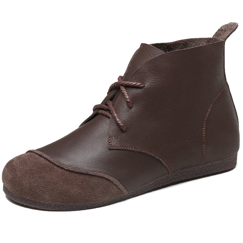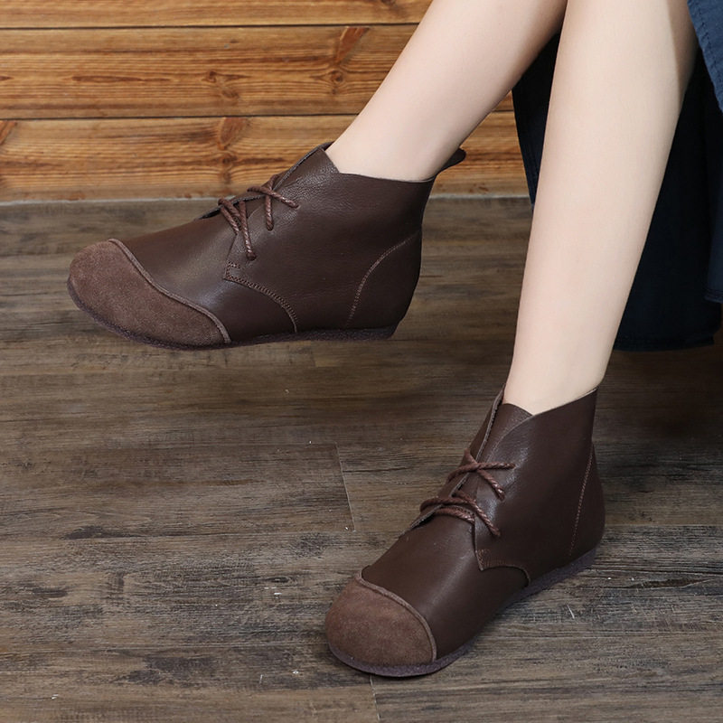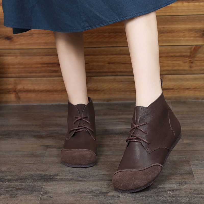 Autumn style women's shoes 2021 genuine leather Martin boots female art retro collage beef tendon bottom lace with flat bottom short boots female