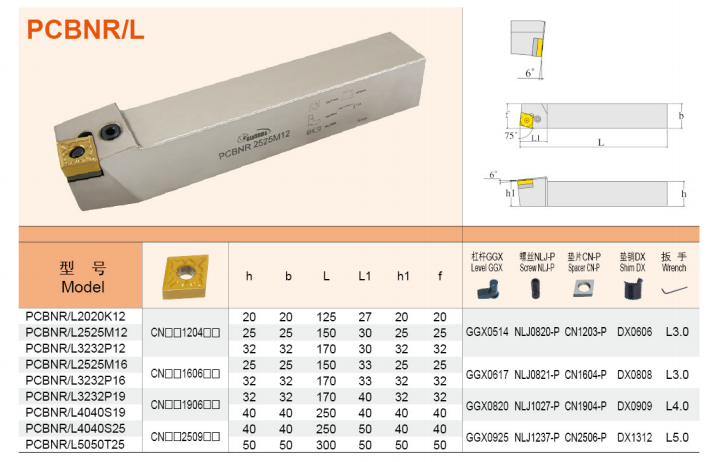 PCBNR2020K12 positive blade PCBNL2020K12 reverse blade PCBNR2525M12 positive blade PCBNL2525M12 reverse blade