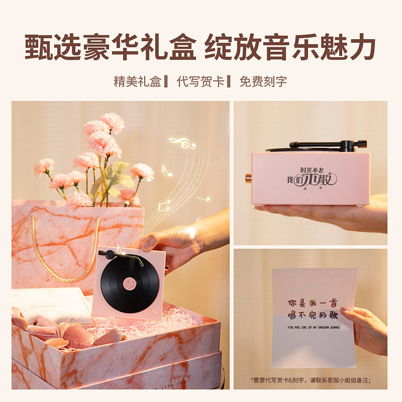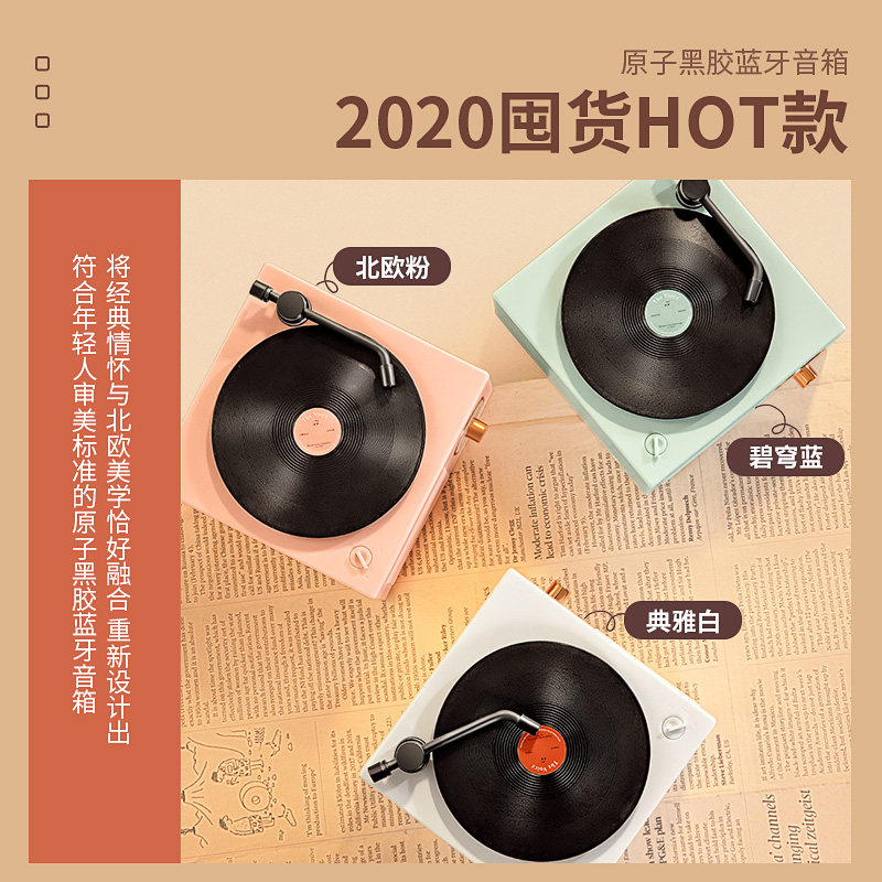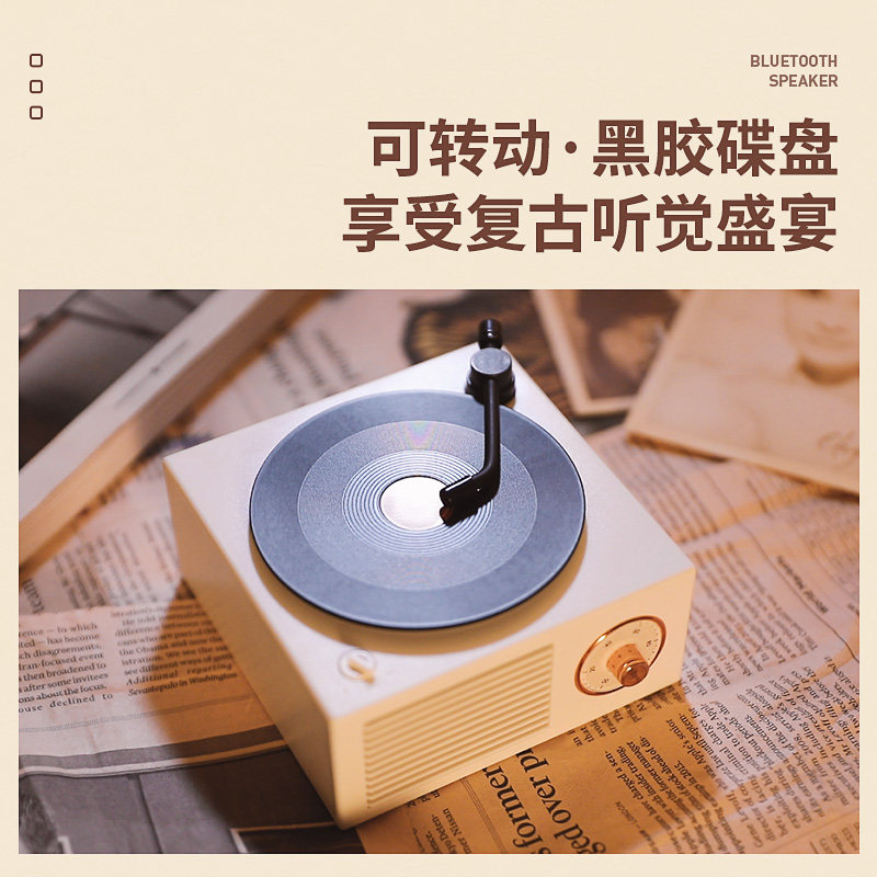 Retro atomic vinyl record wireless bluetooth speaker phonograph small sound cute mini CD player playing one high value girls day gift goddess day creative music sound quality is super good