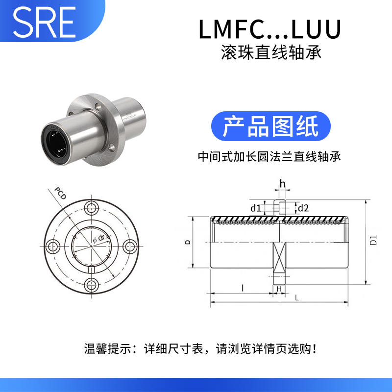SRE imported middle round flange bearing sleeve lengthened ball movement LMFC6 8 10 12 13 LUU