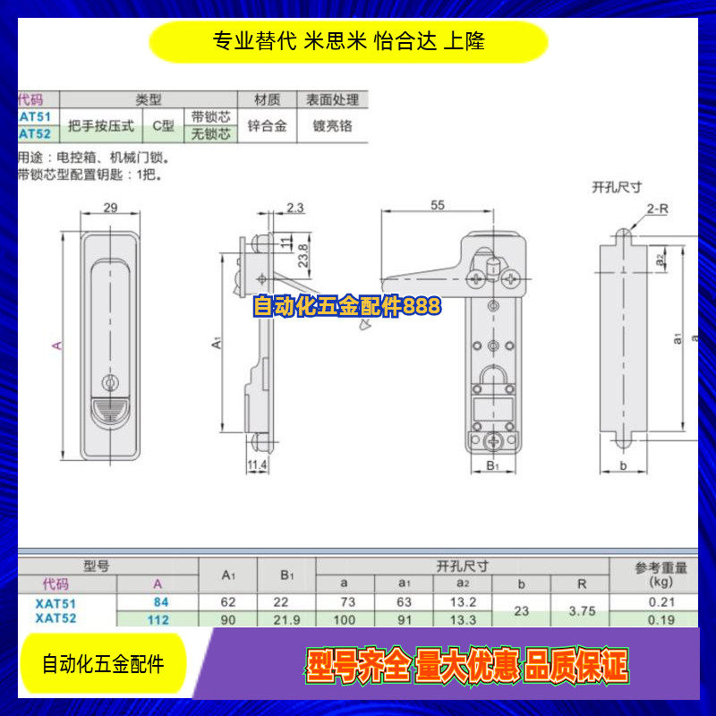 Tongyi Hop XAT51 XAT52 Flat lock handle press type C type distribution cabinet door lock XAT01 XAT02
