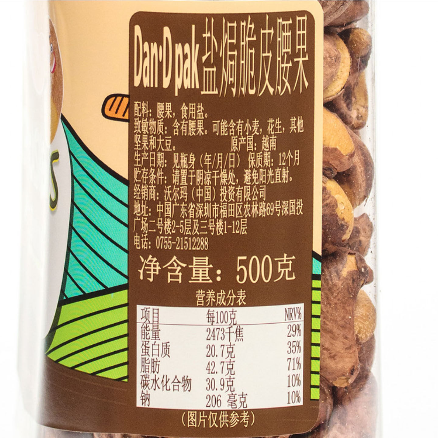 Vietnam imports DAN D PAK salt ovens with crisp cashew nuts 500G cashew nuts with leather dried fruit nuts rind