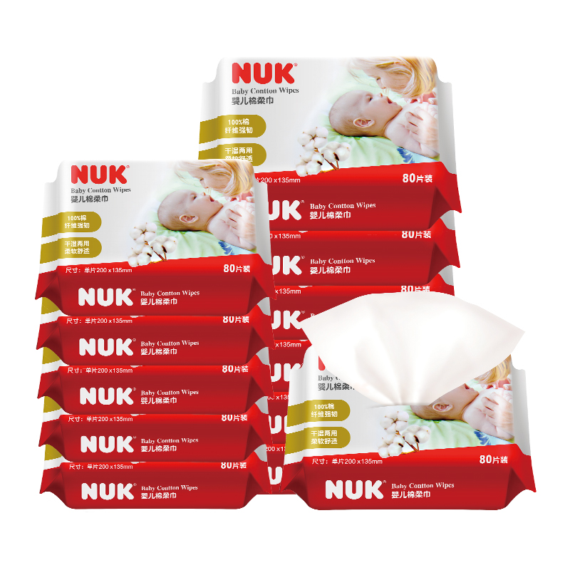 NUK baby cotton soft towel Newborn baby wet and dry dual-use cotton soft towel Non-wet towel removable 80 pumping*12 packs
