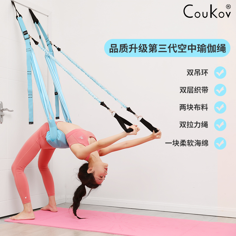 Aerial yoga rope open back pull rope fitness female back bent waist trainer wall rope upside down one-character horse stretch belt