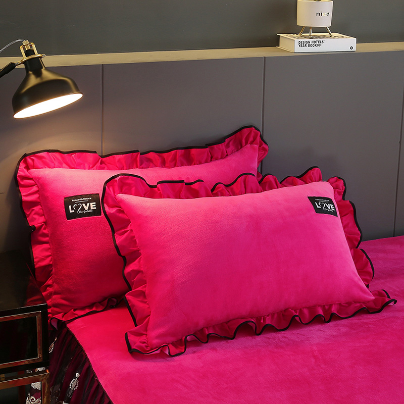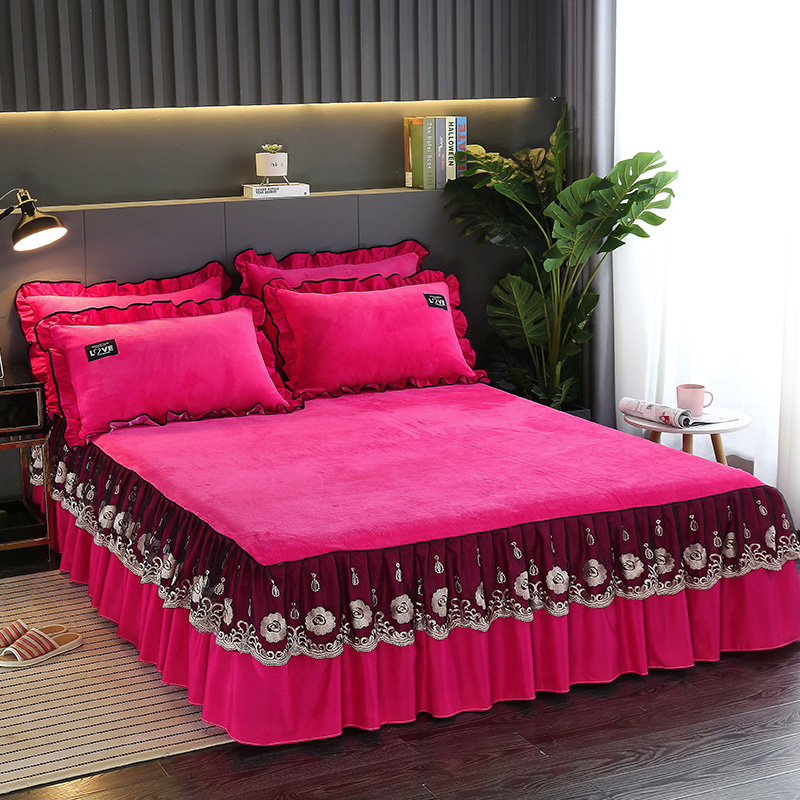 Thickened Coral Suede Bed Skirt Style Four Pieces Pure Color Fallé Flannel Velvet Milk Suede Quilt Cover Bed Linen 4 pieces