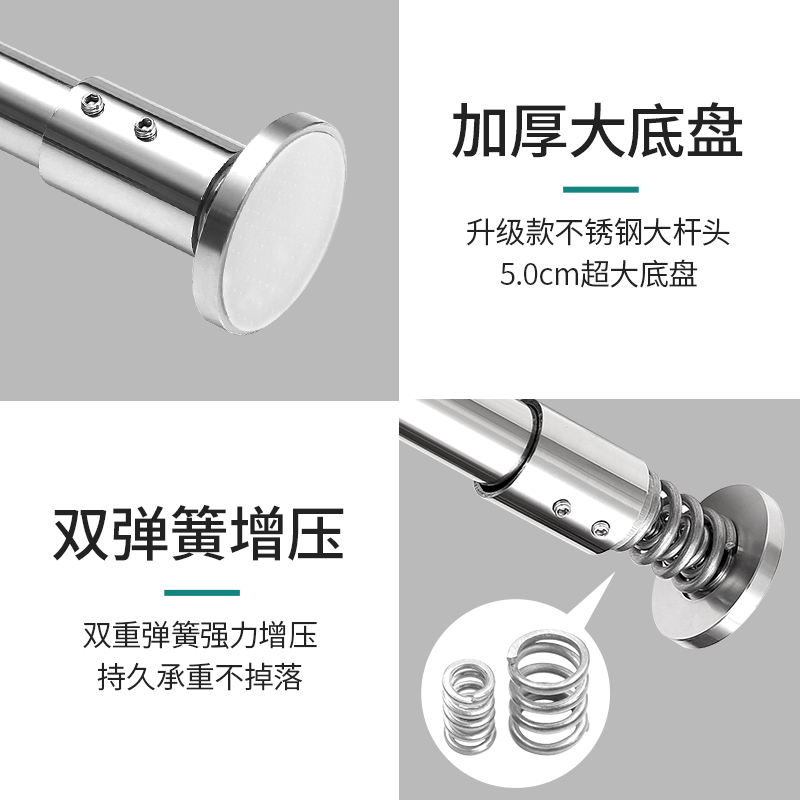 (Double spring pressurization) 304 stainless steel telescopic rod (for 50-75cm) (double spring pressurization) 304 stainless steel telescopic rod (for 70-105cm) (double spring boost) 304 stainless steel telescopic rod (for 100-140cm) (double spring boost) 304 stainless steel telescopic rod (for 135-170cm) (double spring pressurization) 304 stainless steel telescopic rod (for 155-190cm) (double spring pressurization) 304 stainless steel telescopic rod (for 175-215cm) (double spring pressurized) 304 stainless steel telescopic rod (for 210-250cm) (double spring) 304 telescopic rod set (for 70-105cm + shower curtain + metal hook) (double spring) 304 telescopic rod set (for 100-140cm + shower curtain + metal hook) (double spring) 304 telescopic rod set (for 135-170cm + shower curtain + metal hook) (double spring) 304 Telescopic Rod Set (for 155-190cm+ Shower Curtain + Metal Hook) (Double Spring) 304 Telescopic Rod Set (for 175-215cm+ Shower Curtain + Metal Hook) (Dual Spring) 304 Telescopic Rod Set (for 210-250cm+ Shower Curtain + Metal Hook) (Double Spring Pressurization) 304 Stainless Steel Custom Rod (25-60cm Range) (Double Spring Booster) 304 Stainless Steel Custom Rod (61-100cm Range) (Double Spring Booster) 304 stainless steel custom rod (101-150cm range) (double spring boost) 304 stainless steel custom rod (151-180 cm range) (double spring pressurization) 304 stainless steel custom rod (181-200 cm range) (double spring boost) 304 stainless steel custom rod (201-220 cm range) (double spring) 304 custom rod set (101-150 cm interval + shower curtain + metal hook) (double spring) 304 custom rod set (151-180cm range + shower curtain + metal hook) (double spring) 304 custom rod set (181-200cm range + shower curtain + metal hook) (double spring) 304 custom rod set (201-220cm range + shower curtain + metal hook) Other sizes can be customized Please contact customer service