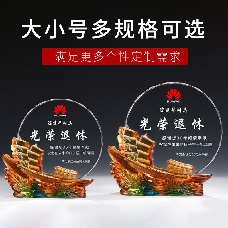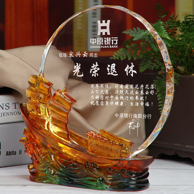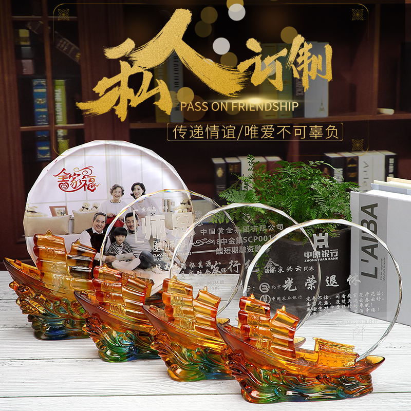 Crystal Glass Retirement Veteran Souvenir Custom Thanksgiving Teacher's Day Photo Sailboat Creative Decoration Gift Lettering
