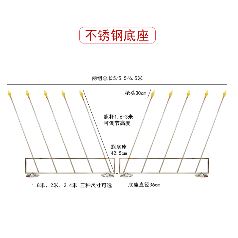 2 5 m stainless steel section (fit 1 flag) (highly retractable) 2 m stainless steel section (fit No. 2 flag) (highly retractable) 1 8 m stainless steel section (fit 3 flags) (height can be