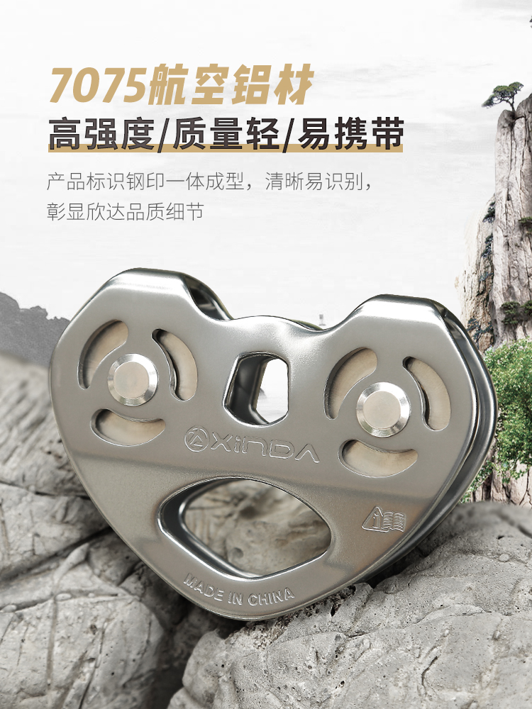 Xindahua tie heart-shaped double pulley bearing ropeway high-altitude transport outdoor climbing mountaineering zipline crossing pulley set