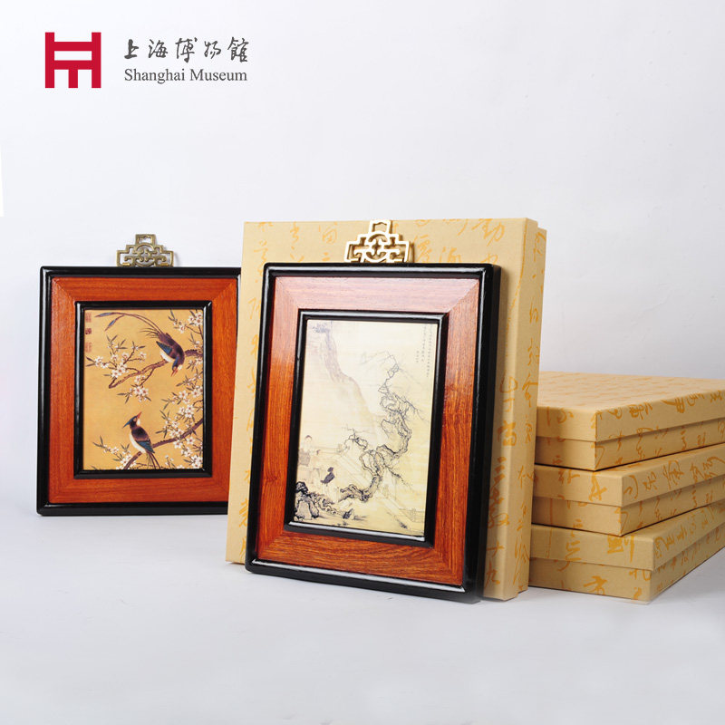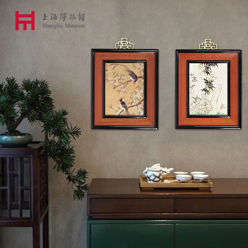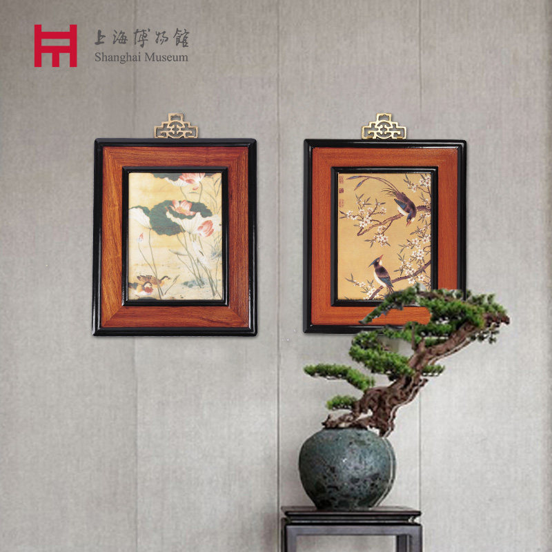 Shanghai Museum Qing peach blossom double ribbon wall painting living room decoration painting home hanging ornament national style elderly gifts