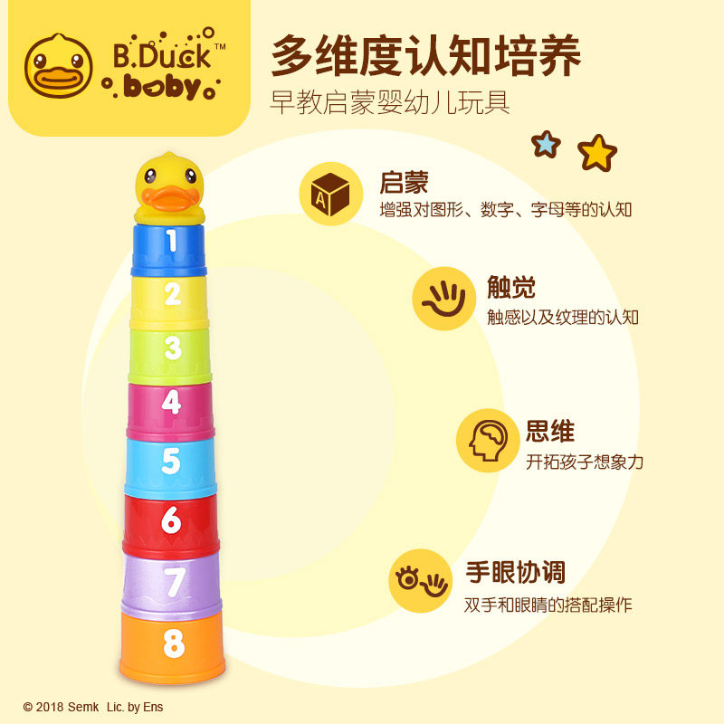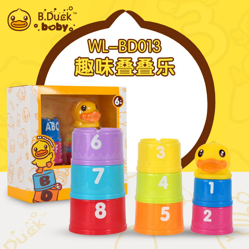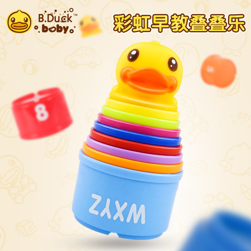 B Duck small yellow duck laminated Leuta cups Baby Boy Puzzle Toys Early Teach Heaps Tower Baby Early Teach Toys
