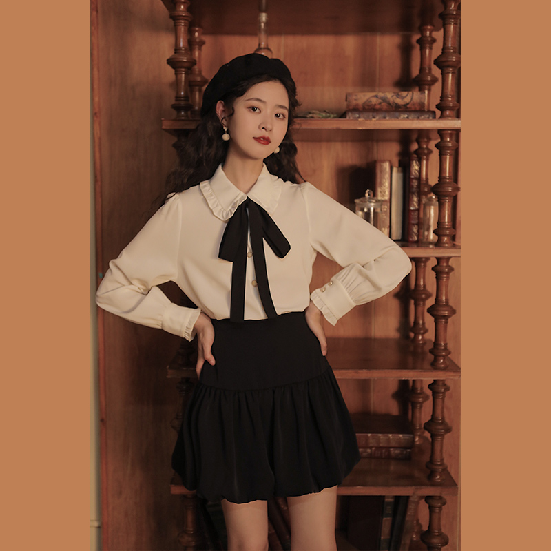 linjou Lingjiu half body dress female high waist flower buds skirt a character short skirt black sweet and beautiful 100 lap 2022 new autumn