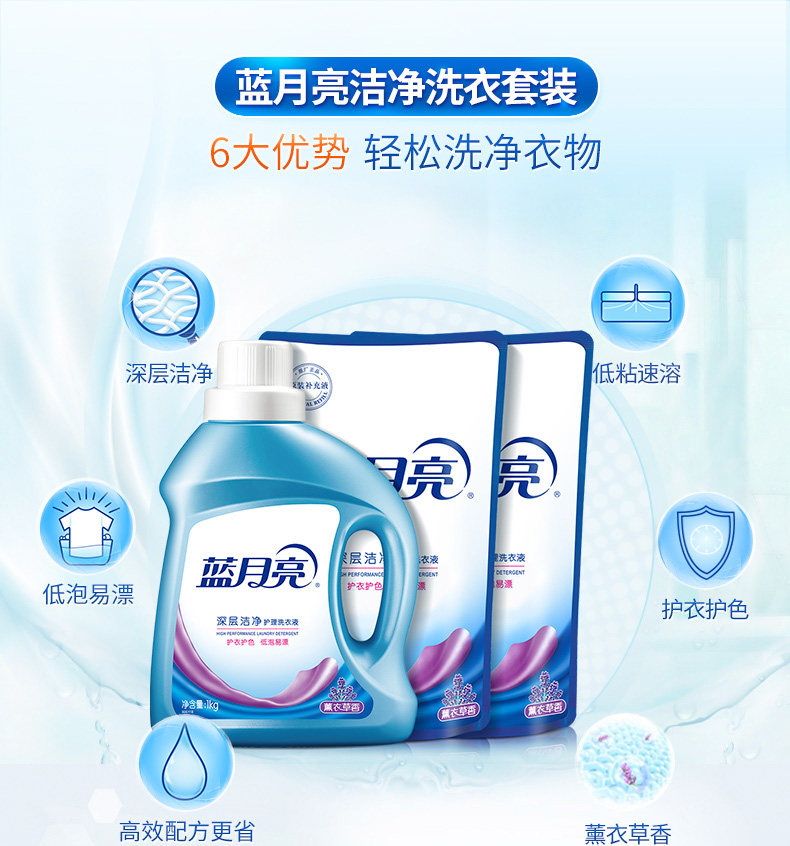 Blue Moon Laundry Liquid Complete Box of Fragrance Lavender Bag Supplement Liner Care for Home Cheap Packaging