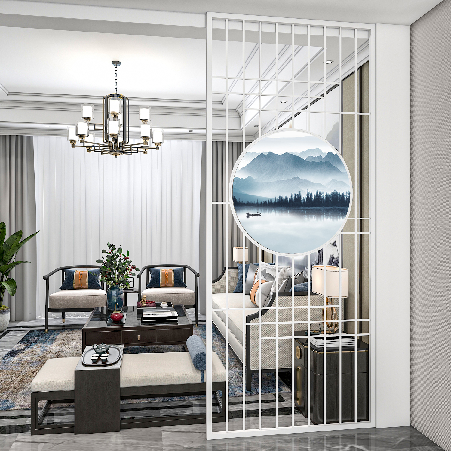 New Chinese style wrought iron home screen creative porch office block card seat partition restaurant living room bar decorative wall - Taobao