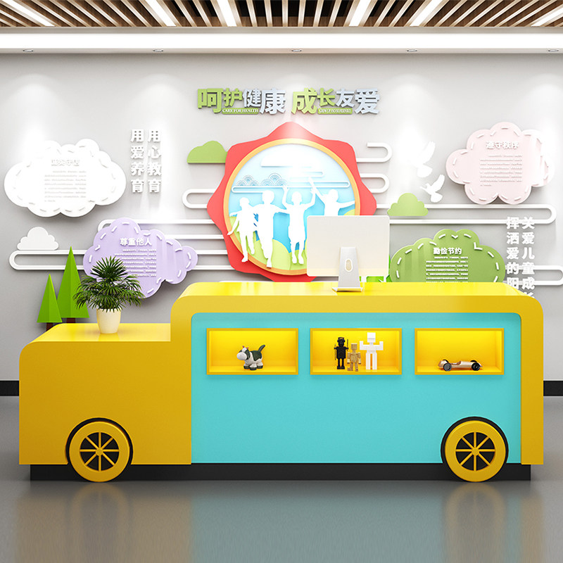 Kindergarten front desk reception desk painting class training institution early education baking paint curved bar table mother and baby shop cash register