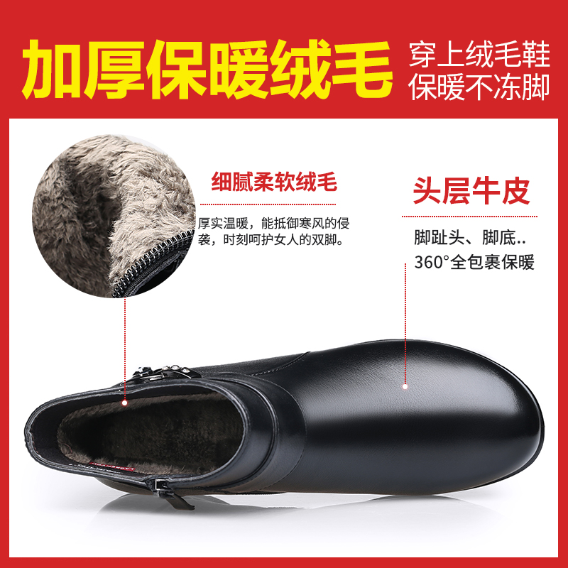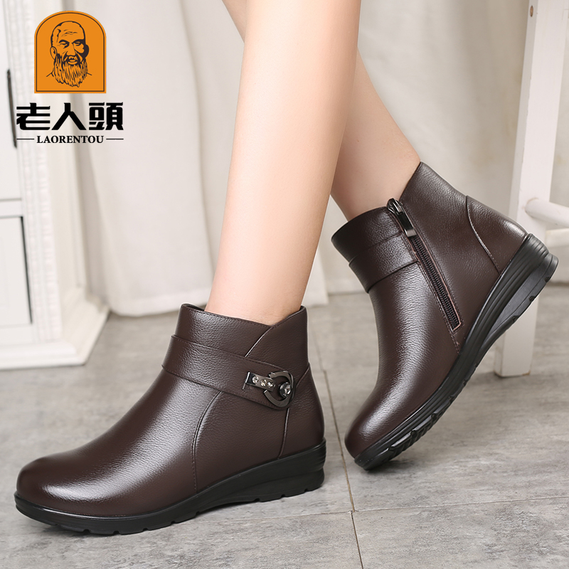 Old man's head women's shoes winter mother's cotton shoes leather plus velvet warm middle-aged and elderly soft bottom non-slip grandma cotton leather shoes women
