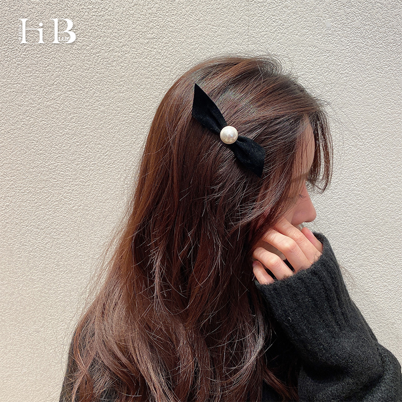 Korean Velvet Black Bow Tie Advanced Sensation Pearl Hair Clip Woman Autumn/Winter Elegant Collet Hair Lipped Sea Side Clip Hair Clip