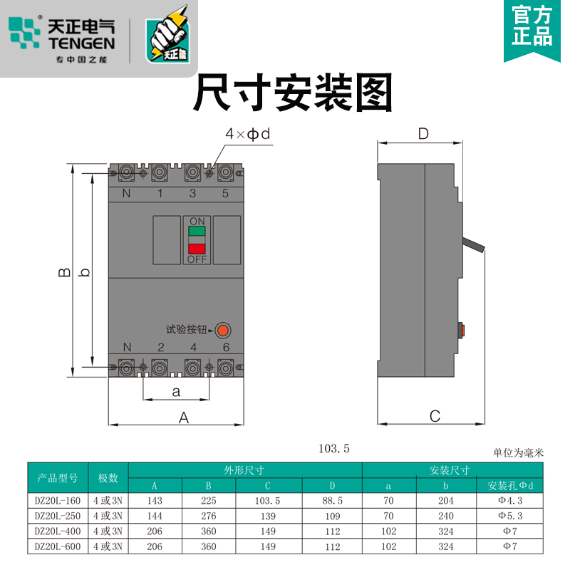Sky positive electrical earth leakage protection breaker DZ20LE 3P N 160200315400600a