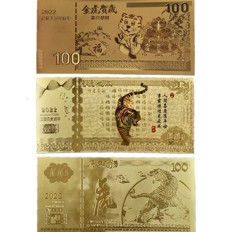 2022 Tiger gold banknotes gold foil to recruit 100 yuan Tube Hao banknotes with hands on New Year
