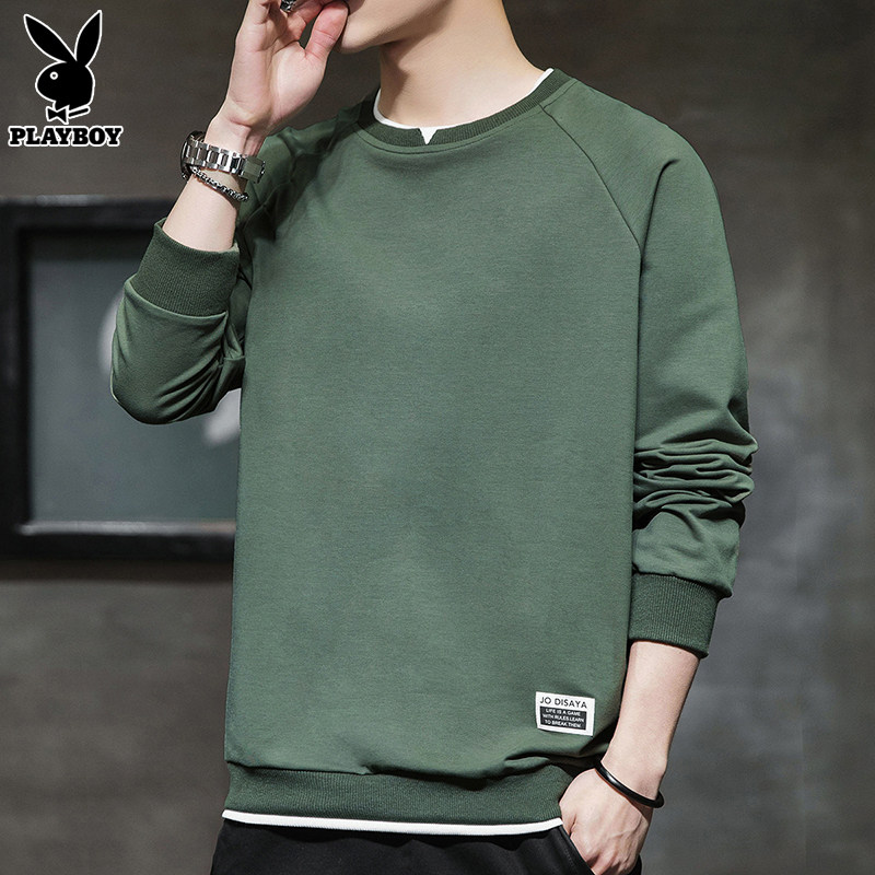 Flowers Playboy fall new thick cotton T men's trends 100 lap up clothes spring and autumn long sleeves T-shirts for undershirt men's clothing