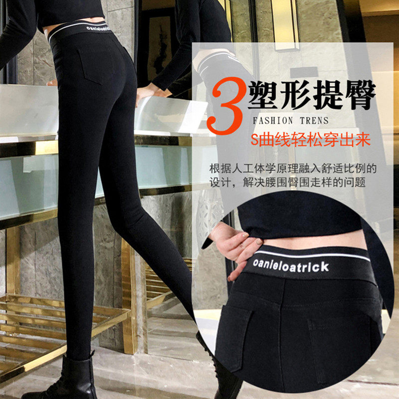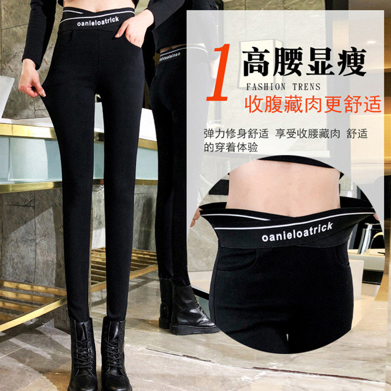 Inner pants, women's outer wear, spring and autumn thin section, black high waist, tight fit, thin autumn and winter plus velvet and thickened nine-point magic pants