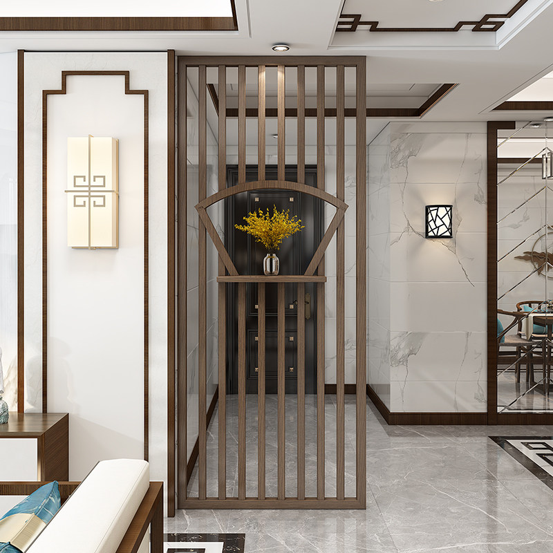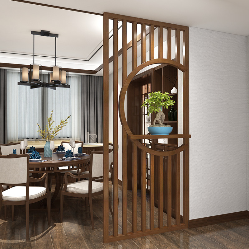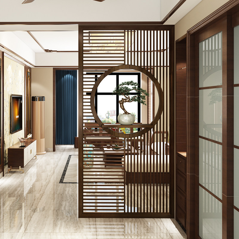 New Chinese Solid Wood Screen Partition Wall Living Room Home entrance Xuanguan shielded wooden grille Hollowed-out Fence small family Type