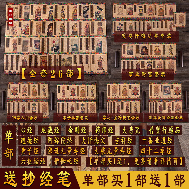 A complete set of 26 codices. Send pen career wealth package. Send Pen Ferry Baby Confession Abortion Baby Package Send Pen Ferry Six Relatives Family Suit. Send pen Buddhist Introductory Package. Send pen to seek a child - pregnancy package. Send pen health kit. Send pen to learn the gold list title package. Send pen marriage love marriage package. Send pen (buy 1 get 1 free) Heart Sutra 18 times send pen (buy 1 get 1 free) Tao Te Ching send pen (full wish) Heart Sutra 108 times. Send pen (buy 1 get 1 free) Jizo Sutra. Send pen (buy 1 get 1 free) Diamond Sutra. Send pen (buy 1 get 1 free) pharmacist sutra. Send pen (buy 1 get 1 free) Great Compassion Mantra. Send pen (buy 1 get 1 free) Amitabha Sutra. Send pen (buy 1 get 1 free) Pumen product. Send pen (buy 1 get 1 free) Puxian wish. Send pen (buy 1 get 1 free) Boy Sutra. Send pen (buy 1 get 1 free) Sangha Sutra. Send pen (buy 1 get 1 free) too on the induction article. Send pen (buy 1 get 1 free) Buddha said immeasurable. Send pen (buy 1 get 1 free) auspicious sutra. Send a pen