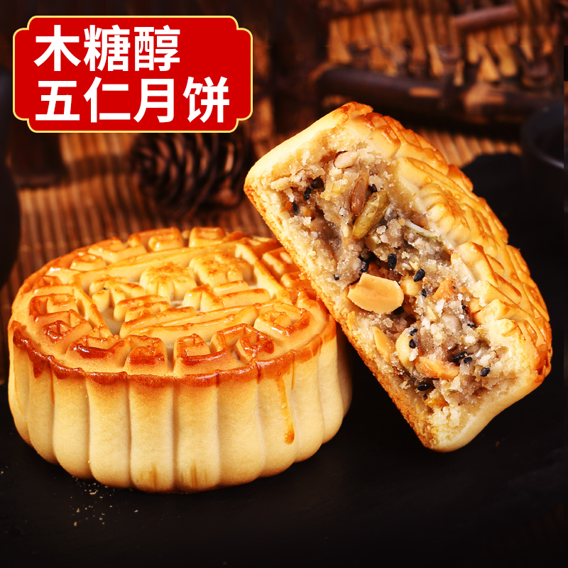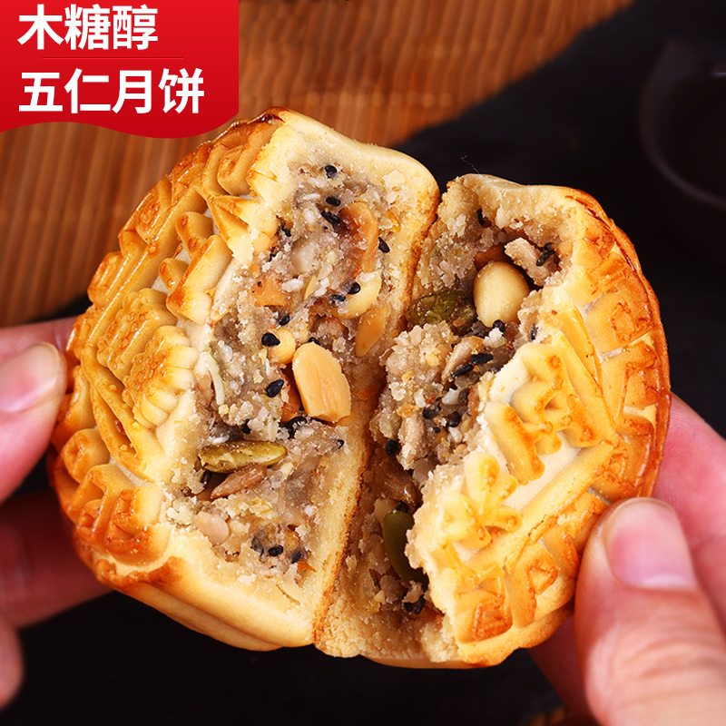Riyuefang xylitol five-kernel moon cake Cantonese-style five-kernel no added cane sugar red bean black sesame salt and pepper chestnut moon cake